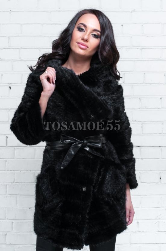Пальто из норки черного цвета с отложным воротником