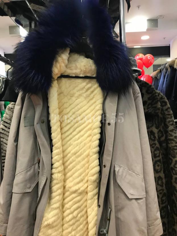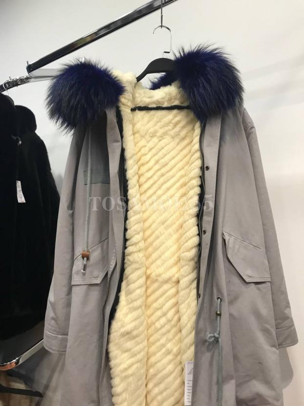 Серая парка с мехом енота