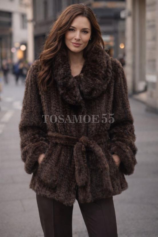 Жакет из вязаной норки с отложным воротником